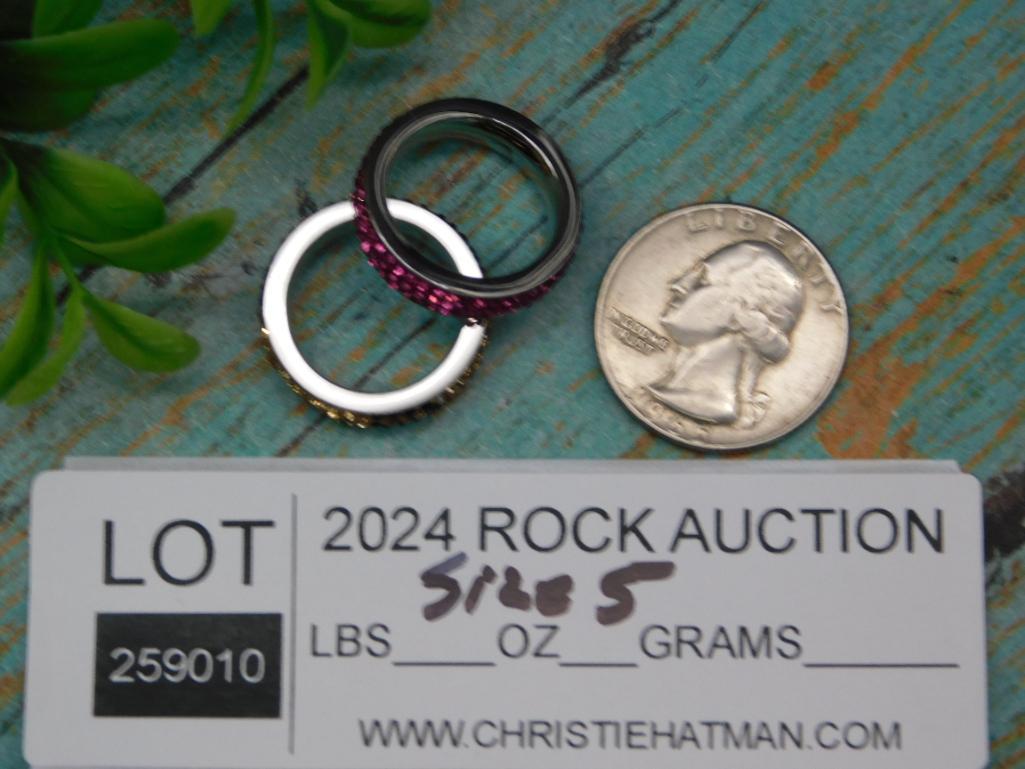 FASHION RINGS PINK AND YELLOW ROCK STONE LAPIDARY SPECIMEN