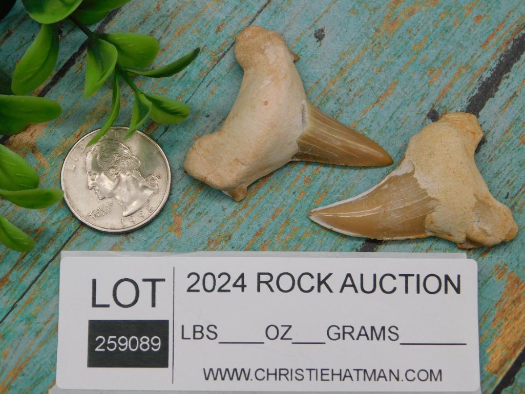 SHARK TEETH SET OF 2 ROCK STONE LAPIDARY SPECIMEN